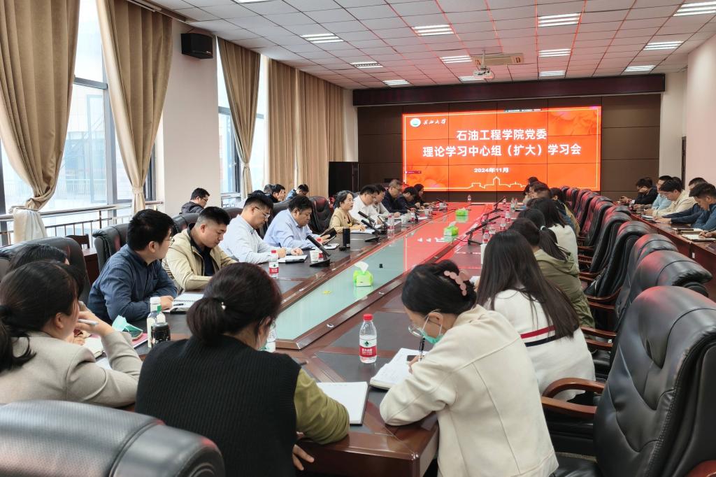 党委理论学习中心组在石油科技大楼B113会议室开展11月集中学习,中心组全体成员、学院系主任、副主任、党支部书记、行政管理人员参加。