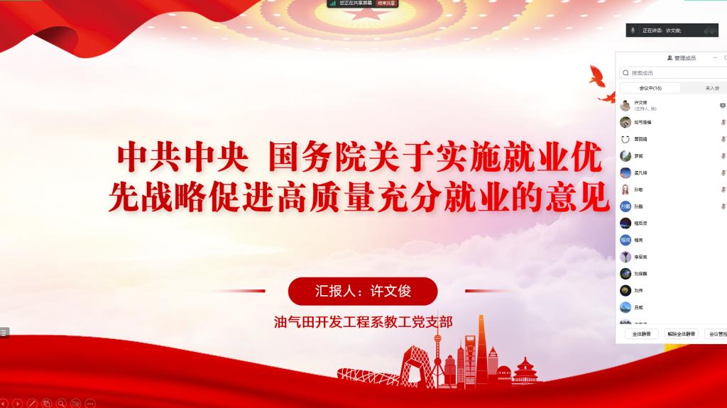 在行政办公室103召开《中共中央国务院关于实施就业优先战略促进高质量充分就业的意见》(后面简称《意见》)学习会,全体支部书记参加会议,党委副书记张昊主持会议。