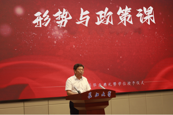6月8日下午,在武汉校区学术报告厅,无码a片 院长江厚顺为2023届全体毕业生讲授形势与政策课。