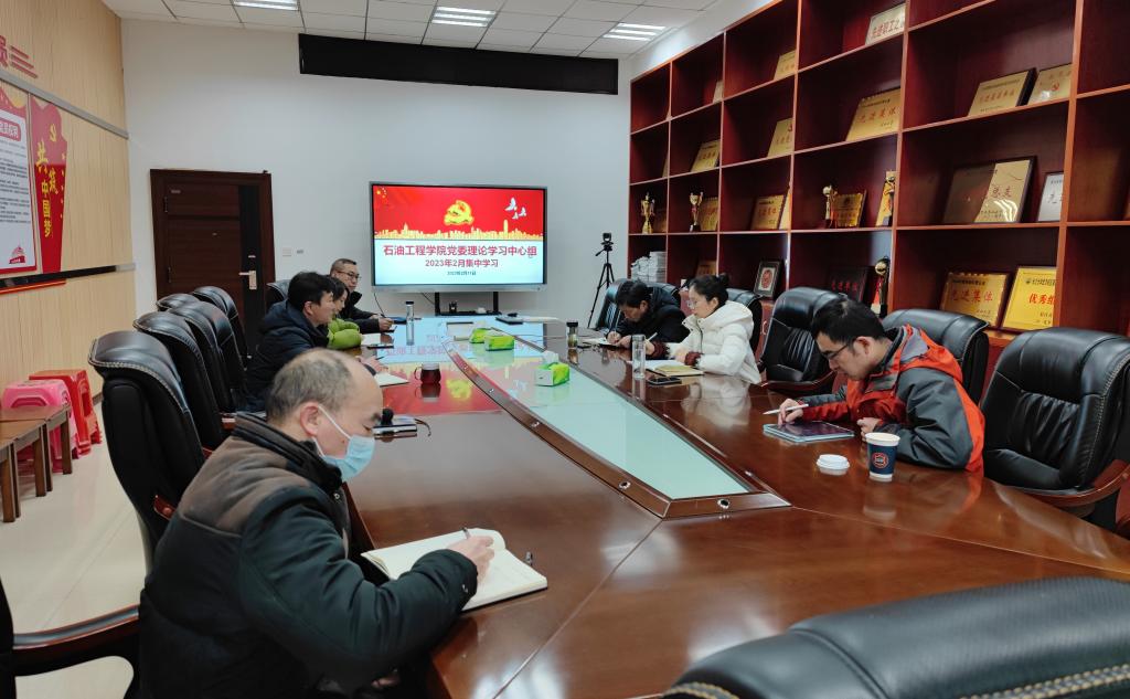 2月12日上午九时,学院党委理论学习中心组在石油科技大楼C110会议室开展2月份集中学习,会议由学院党委书记张伟主持,中心组全体成员参加。