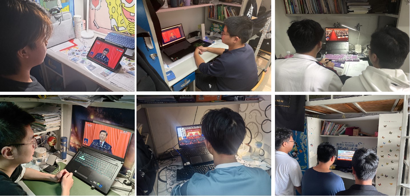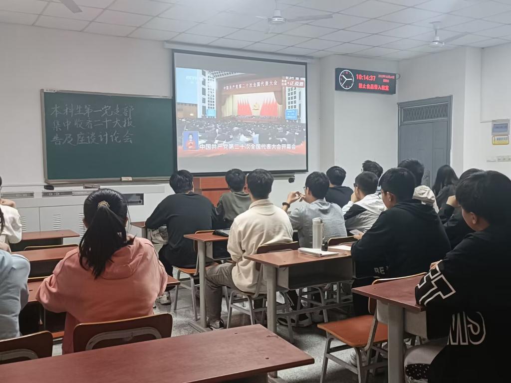 师生通过多种渠道收听收看党的二十大开幕会盛况,认真聆听习近平总书记所作的报告。学院组织党委理论学习中心组、机关党支部在石油科技大楼C113会议室集中收看,各教工党支部、学生党支部在教室或腾讯会议平台集中收看,其他教师和学生纷纷通过电视、电脑和手机客户端等方式自行收看,共同见证这一伟大历史性时刻。