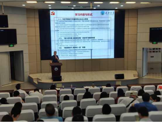 6月10日下午,学院在武汉校区学术报告厅召开6月份政治理论学习会,对“习近平新时代中国特色社会主义思想”、“奋斗百年路 启航新征程”党史学习教育和“奋进新时代 筑梦双一流”专题进行了集中学习,会议由党委书记张光明主持。