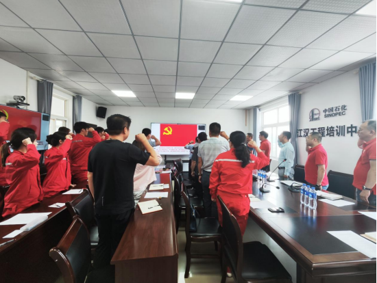 在学生党员吴彪的带领下,全体与会党员同志重温了入党誓词。江汉油田工程公司培训中心党支部副书记孙铁、油气井工程系师生联合党支部书记余义兵分别介绍了支部基本情况和党建特色工作,还交流了工作经验。