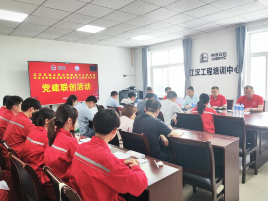 油气井工程系师生联合党支部与江汉油田工程公司培训中心党支部开展联学联建暨“学党纪 明规矩”主题党日活动。江汉油田工程公司培训中心党支部副书记孙铁、组织委员强峰、油气井工程系系主任熊青山、支部书记余义兵、实习指导教师和学生党员参加本次活动。