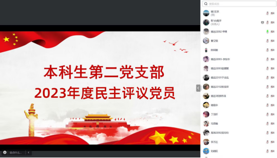 (通讯员 王京 曹立销)1月16日下午,本科生第二党支部线上开展2024年1月主题党日活动暨2023年度党员民主评议,本次活动由向雪芹主持,支部书记周晓峰及支部全体党员参加。