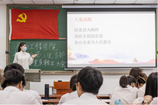 大会伊始,主持人宣读大会纪律后全体起立奏国歌。其后,魏嘉等12名预备党员逐一向党支部汇报了各自在一年预备期和考察期内改正了什么缺点并且为同学、学院、支部和社会做了什么服务。其他党员同志认真倾听后,讨论了该同学的在校表现,并给予了诚恳的建议。之后由该同志进行表态发言,正式党员进行表决。预备党员转正大会的议程进行完毕后,经过全体正式党员的无记名投票,全面通过魏嘉等12位预备党员顺利转为中共正式党员。