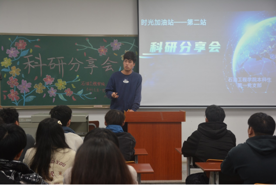 苏文林同学从“如何扮演好科研组中的角色”的角度出发,向同学们讲述了科研团队中的角色分工及其各自的职责要领。他强调科研项目的有序开展不仅需要组长和组员找准自身定位、明确自身职责、扮演好各自的角色,而且也需要重视团队成员之间的协调与配合,将小我融入大我,培养出高度的责任感和归属感,这对接触更多的合作事项乃至未来的职业发展有着重要意义。他还指出科学无国界,但是科学家是有祖国的。我们长大学子无论何时都应爱石油爱祖国,争做“六有”新青年,无论从事任何活动都应以国家为重,为国家富强民族复兴贡献出自己的力量!