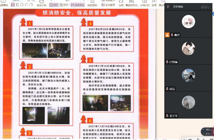 在政治理论学习的基础上,为加强学生宿舍安全,杜绝火灾等安全事故,确保学生生命财产安全,各班级组织学习了《加强学生宿舍消防安全管理规定》 的通知,以2020年至2022年发生的校园火情案例为警示,开展消防安全教育,提醒同学们警觉消防安全隐患,增强消防安全意识。