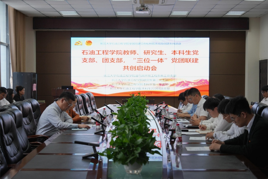 在石油科技大楼B113会议室举行"三位一体"党团联建共创启动会暨"党团融合聚力 科教协同育人"主题党日活动。学院师生代表、本科生党支部、团支部等50余人参加活动,共同开启党建引领团建的创新育人实践。活动由油气田开发工程系教工党支部书记许文俊同志主持。