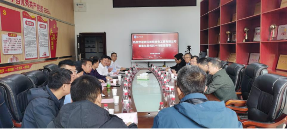与武汉新锐合金工具有限公司校企联合实验室建设进程, 10月30日,武汉新锐合金工具有限公司董事长吴何洪、副总裁刘勇、技术中心主任余立新、副主任李宁、湖北江汉石油仪器仪表股份有限公司总经理黄大勇和总工程师佘理鸿一行来院进行交流。学院院长宇波、常务副院长李忠慧、党委副书记张昊、副院长张顶学、副院长范梅英、副院长郑双进、实验中心主任马超、杨冬教授、喻高明教授及相关老师参加交流会。