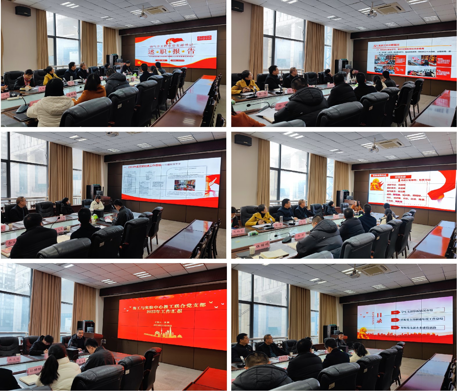 根据述职要求,6个教工党支部和1个学生党支部依次进行现场述职。油气田开发工程系教工党支部书记许文俊对标“七个有力”,汇报了支部发挥“全国党建工作样板支部”示范作用,创新党建工作方式方法,打造党建工作特色亮点,推动党的建设与业务工作相融合、双促进等具体工作。研究生第二党支部书记陈金建汇报了支部围绕“四抓四促”创建湖北省高校“研究生样板党支部”的进展情况。其他各支部纷纷聚焦党建与业务融合发展,对2023年支部工作进行了全面梳理,讲成绩实事求是,谈问题不遮不掩,说计划有的放矢,达到了交流工作、鼓劲加油的效果。