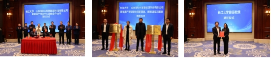 党委书记张伟、学校办公室副主任王宁与海利丰副总经理陈久金、马正孔为新能源产学研联合创新基地、新能源实习基地揭牌;另外,胡德群受聘为无码a片