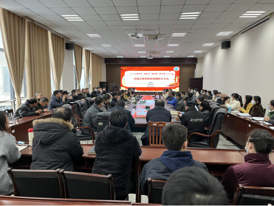 2月16日上午9点,学院在石油科技大楼B113召开2023年第一次全体教职工大会,本次会议由学院党委书记张伟主持。会议主题为“凝心聚力,奋力拼搏,全力推进石油与天然气一流学科建设”。