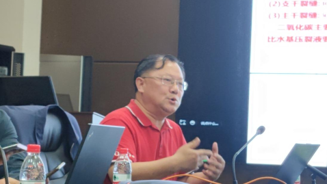 付美龙教授从CO2物化特性和增产机理、CO2前置增能压裂技术特点、CO2常压混砂准干法压裂技术、CO2羽流地热系统(CPG)及技术展望和应用前景等方面进行了汇报,付教授声音洪亮、逻辑清晰,深入浅出地介绍了CO2的基础知识和在能源行业应用的学术前沿,得到了线下参会师生与线上学者们的一致好评。