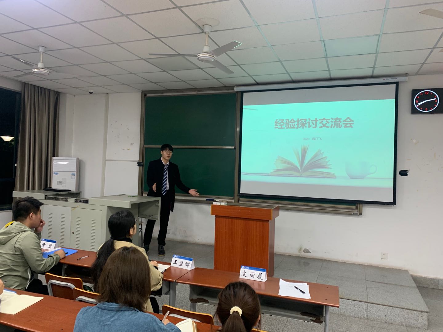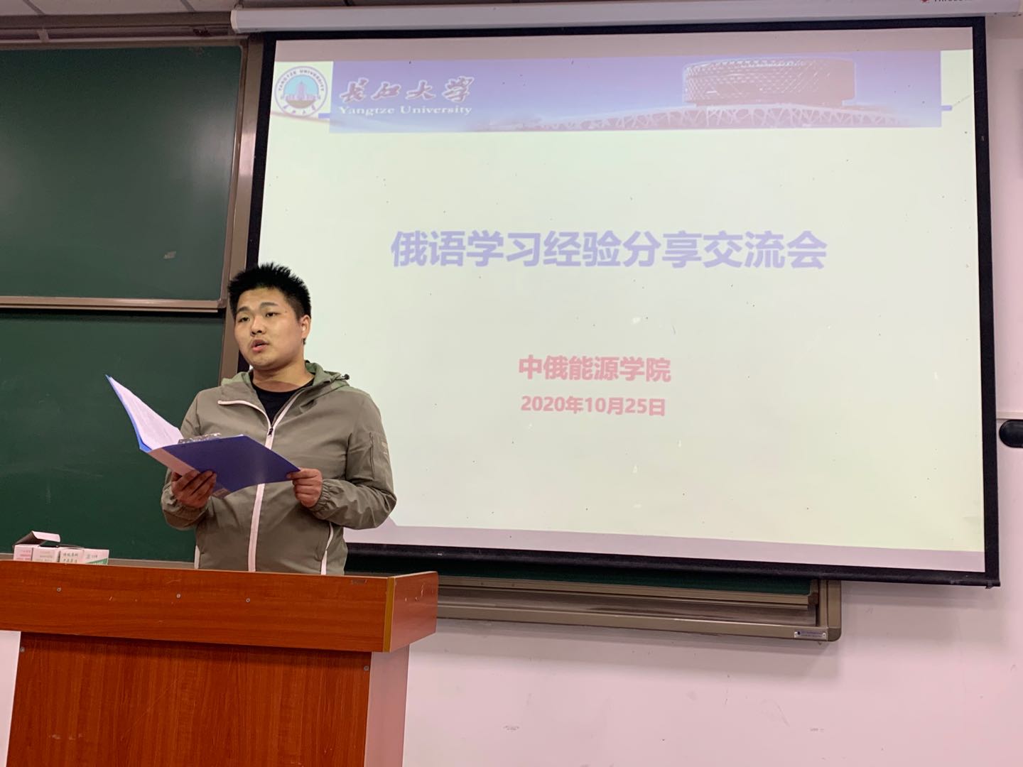 在武教A106举行了“俄语学习经验分享交流会”。中俄能源学院科长喻选梅老师、文丽晨老师、俄语教师王翌婵博士、中俄试点班18级学生黄盟、金铭、刘玉龙、魏江飞及中俄试点班19级全体同学参加了此次交流会。会议由中俄能源学院文丽晨老师主持。