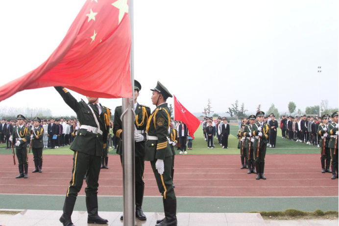 仪式开始,国旗护卫队方阵踏着正步,擎举国旗,缓缓走向旗台。他们目光坚定、步伐整齐,展现出了长大学子的坚韧。五星红旗迎风飘扬,国歌之声响彻校园。