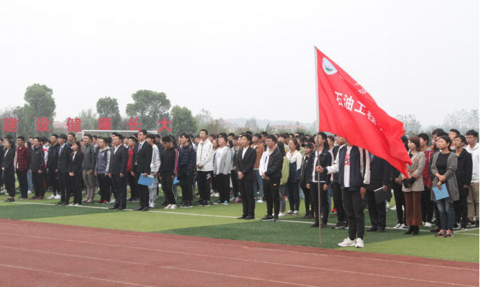 礼毕,在主持人的带领下,全体人员合唱院歌《江汉石油之歌》,全场响起激动人心得歌词:不怕艰苦,何惧风霜,愿献出青春热血,为祖国繁荣富强……