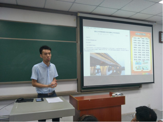 的惯例。讲座开始,由学工办沈伟正老师首先就安全教育相关知识进行宣讲,主要涵盖防溺水、防火、防盗等方面的知识。首先,沈老师以一个湖北14岁男孩溺水失踪的案例引出正题。近年来少年儿童溺水失踪死亡的案例屡见不鲜,无论是那个家庭都难以承受失去孩子的痛苦,因此,防溺水安全教育尤为重要。沈老师向大家讲授了防溺水三字经:讲安全,是第一,防溺水,要牢记······加深了同学们对防溺水安全的重视度。同样地,防火安全亦很重要。沈老师讲到:“大学校园中也是发生过严重的火灾,在寝室中使用大功率电器,如电磁炉、热得快等,是存在很大安全隐患的,因此学校要将大功率电器列为禁用电器,这也是为大家好。火灾不是天灾,希望各班长给班上每个同学通知到位,尽量避免火灾的发生。”最后,沈老师在防盗方面给大家讲述了相关知识,三个方面的讲述使在会人员对防火防盗防溺水引起了更高度的重视,相信在之后的学习生活中,每个人都会遵规守矩,避免悲剧的发生。