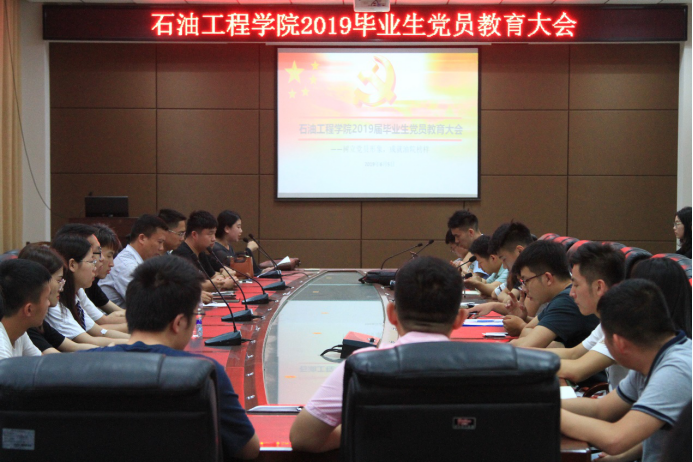毕业生党员教育大会在石油科技大楼会议室如期召开。院党委副书记王辉老师、学生党支部书记沈伟正老师、学工办辅导员郭冀宁老师参加了本次大会。本次会议由曾羽佳同志主持。