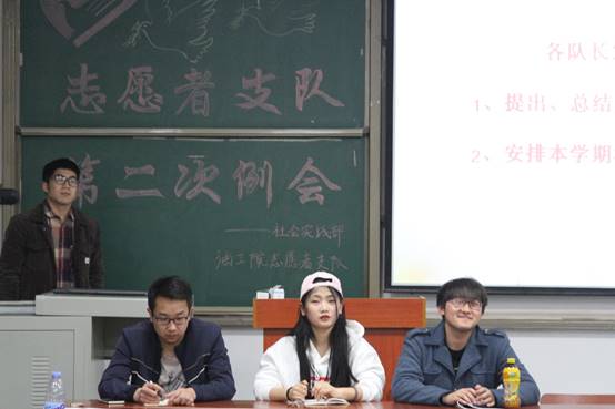 团委学生会社会实践与志愿者服务部同油工院志愿者支队全体于武教A-102开展第二次例会,前志愿者支队队长徐星宇学长出席。本次例会由学习雷锋精神、成果展示及总结、明确志愿活动的意义及成员建议与反思等四个环节组成。