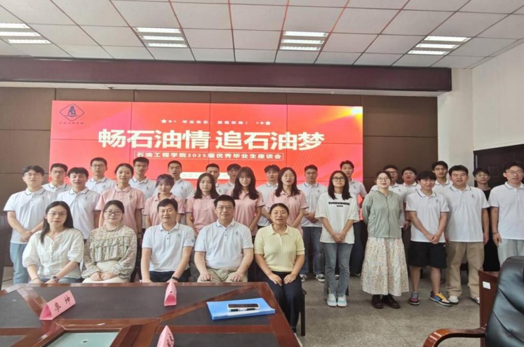 在石油科技大楼B113会议室召开以“畅知音情,追石油梦”为主题的优秀毕业生座谈会。学院常务副院长李忠慧教授、党委副书记张昊、辅导员商麟鑫、朱小露及黄灿老师与25名优秀毕业生代表亲切座谈,共叙师生情谊,展望未来发展。