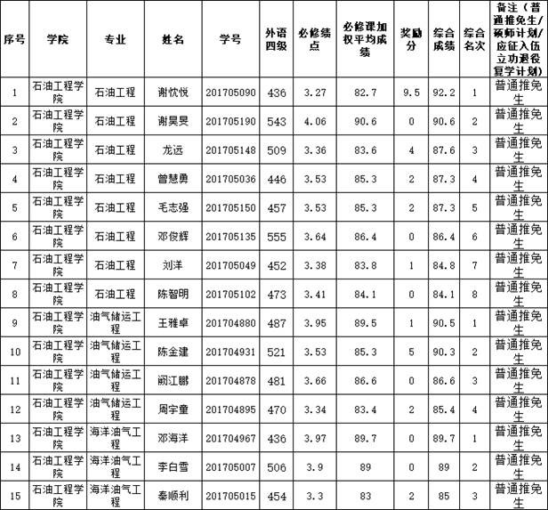 各专业拟推荐名单如下: