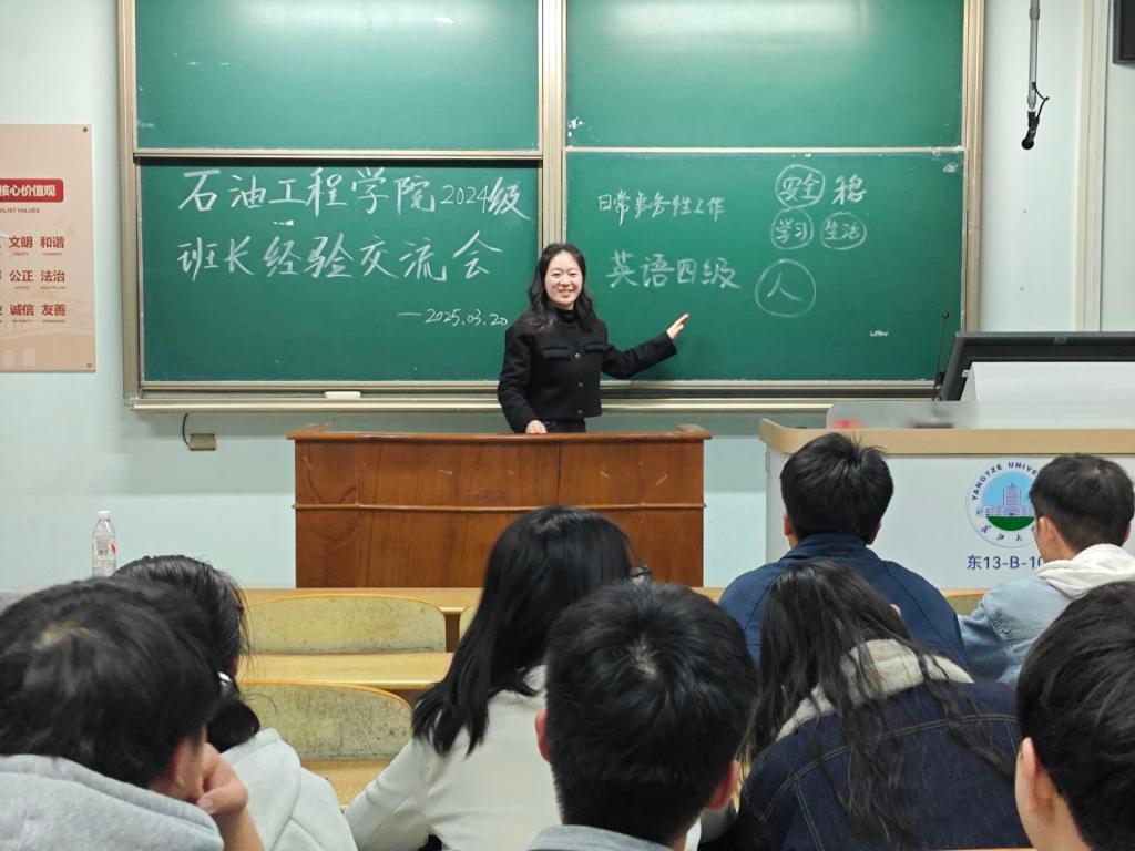 分享结束后,周老师上台发言,对班长们的工作给予了高度肯定和表扬,从安全、学习、生活三个方面对班级工作提出了新的要求和期望。她强调,安全是班级工作的重中之重,班长们要时刻关注同学们的人身安全和财产安全,做好安全教育工作,确保班级无安全隐患。在学习方面,周老师希望同学们继续保持良好的学习态度,努力提高学习成绩,尤其是要重视英语四级考试的通过率,她鼓舞班长们“要做,就要做最优秀的!”同时,周老师也提到团建活动的重要性,认为通过丰富多彩的团建活动,可以增强班级凝聚力,培养同学们的团队合作精神,为班级的全面发展奠定基础。