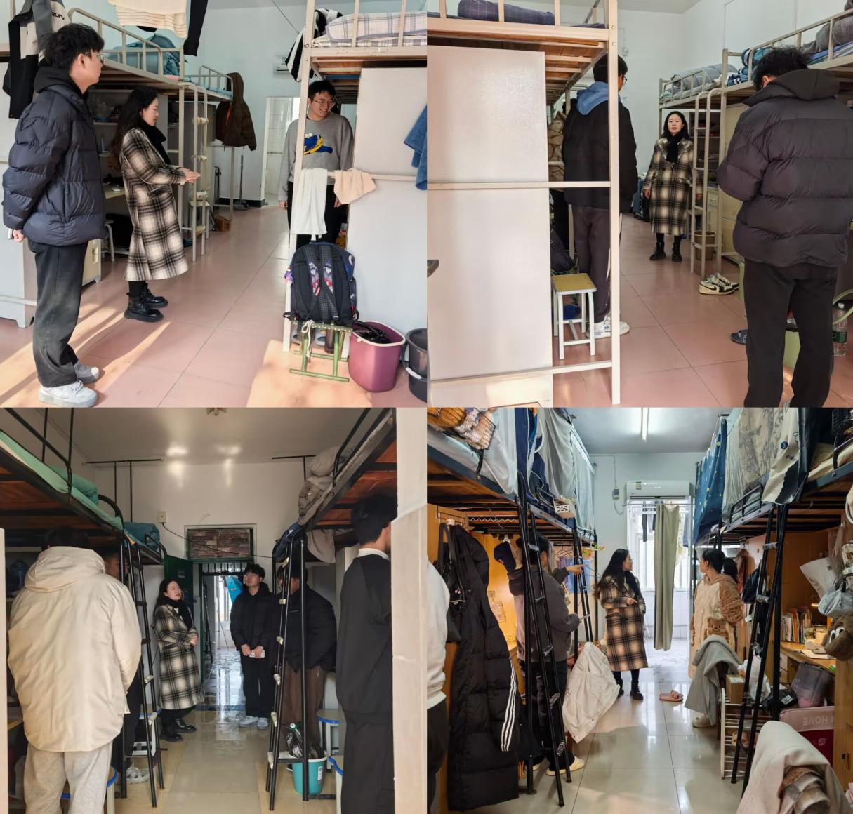 (通讯员 周雨薇 王亭又)寒假临近,为确保学生宿舍的安全与整洁,了解24级学生在期末考试周阶段的学习生活情况,1月2日中午,无码a片 24级辅导员周雨薇老师与兼职辅导员江千喜老师对本院24级学生宿舍进行了安全卫生检查工作。 老师们对宿舍的安全及卫生状况进行了认真检查,对卫生情况较差的宿舍现场提出了改进意见,也对卫生情况良好的宿舍给予了肯定和表扬;同学们要注重宿舍的安全卫生,在宿舍中要保持良好的学习和生活习惯,并围绕宿舍安全对即将来临的寒假假期做出相关注意事项的提醒。最后,就同学们的心理情况和学习状态问题,与各个宿舍的同学们进行了亲切交流,鼓励大家合理安排时间,诚信应考,考出好成绩。 此次寒假前宿舍安全卫生检查,强化了同学们的安全卫生意识,促进了良好、健康的寝室环境的营造。不少同学表示,将会以良好的状态迎接期末考试,以快乐的姿态度过美好假期。 【审核:张昊 编辑:韩清越】