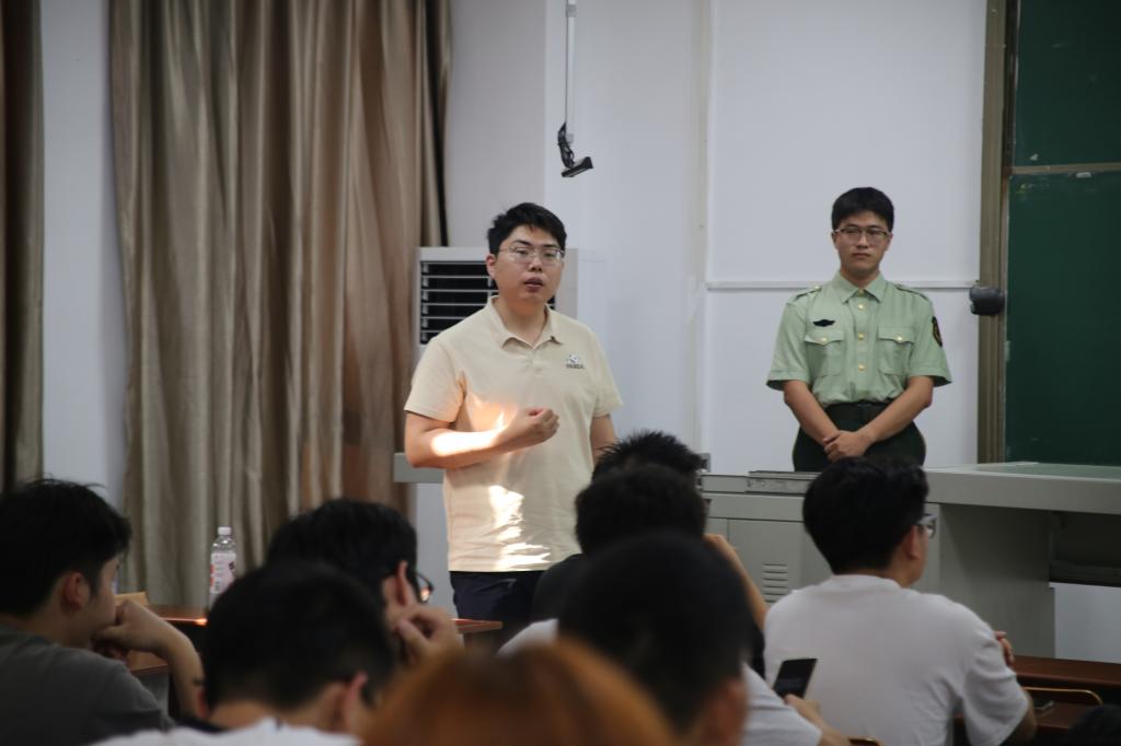 于武教A102举办了2025年春季学期征兵宣讲会。本次宣讲会由退伍大学生代表洪一帆和黄少栋担任主讲,辅导员韩清越主持。