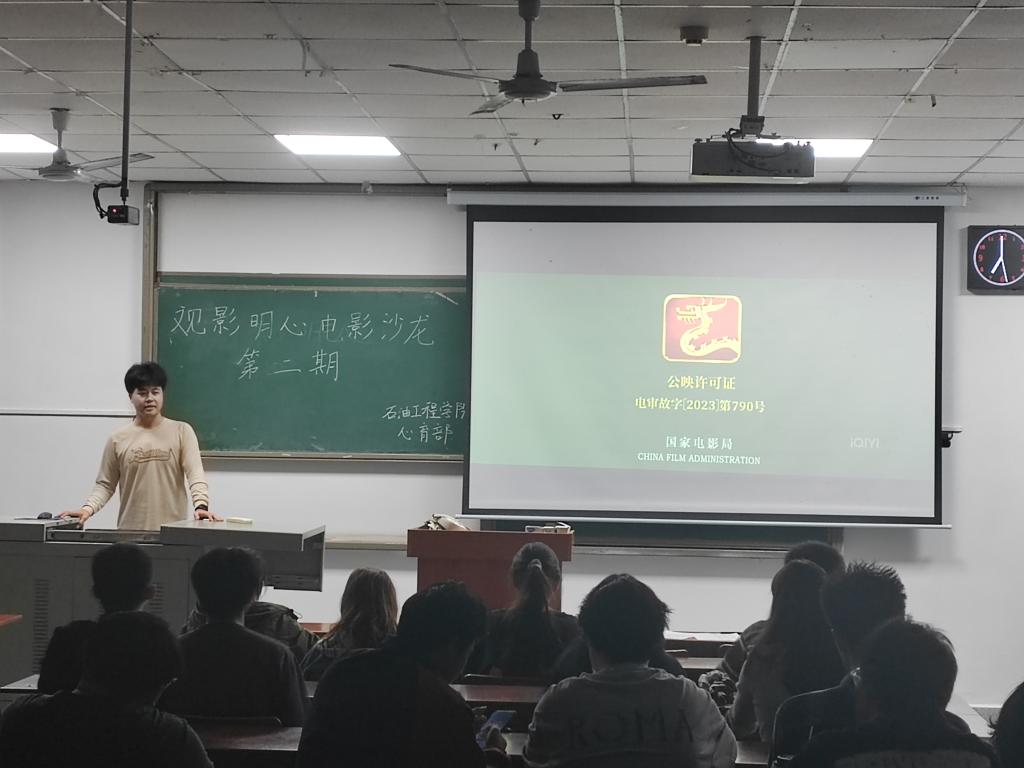 在武汉校区图书馆二楼报告厅举办学院心育特色活动——“观影明心”心理电影沙龙。本期播放的影片是《第二十条》,由心育部的学生干部带领同学们透过电影走进现实法治场景,感悟法理与情理交织下的人性抉择,学习如何以法治思维守护自身权益与心理健康。活动由油工22404班钱德乐主持,共80名同学参加。