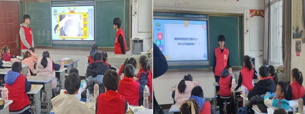 活动现场氛围热烈,学生们踊跃参与互动,展现了浓厚的学习兴趣。同时,其他志愿者也积极协助维护秩序,确保宣讲顺利进行。