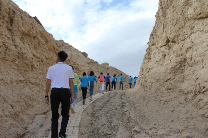 图为实践队员沿着石油先辈走过的路攀登,重温石油人艰苦奋斗的历程。通讯员 陈金建 摄