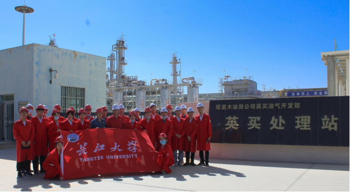 图为“黑油”实践队全体队员在英买处理站前的合影。通讯员 陈金建 摄