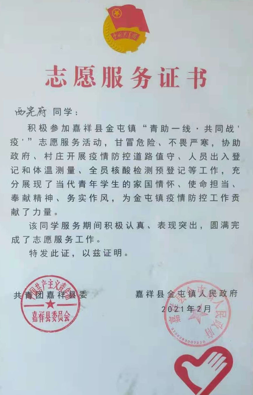 青春,是一个“破茧成蝶”的故事,这里面有美丽、有智慧、有成熟,更有责任和担当,青春最激昂的旋律就应该是为国为民努力奋斗。西宪府同学已经毫不犹豫的接下时代的接力棒,在疫情防控的战场上书写着他矢志不渝的初心和无悔的青春。胸有大志、心有大我、肩有大任,这就是中国青年应该有的样子。