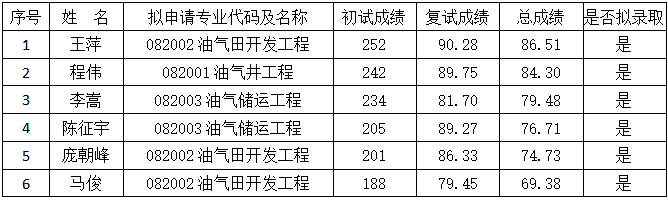 以上6名同学为拟录取名单,拟录取资格将在公示期结束上报研究生院审核,最终拟录取名单以研究生院公示为准,学生签订诚信协议后生效。